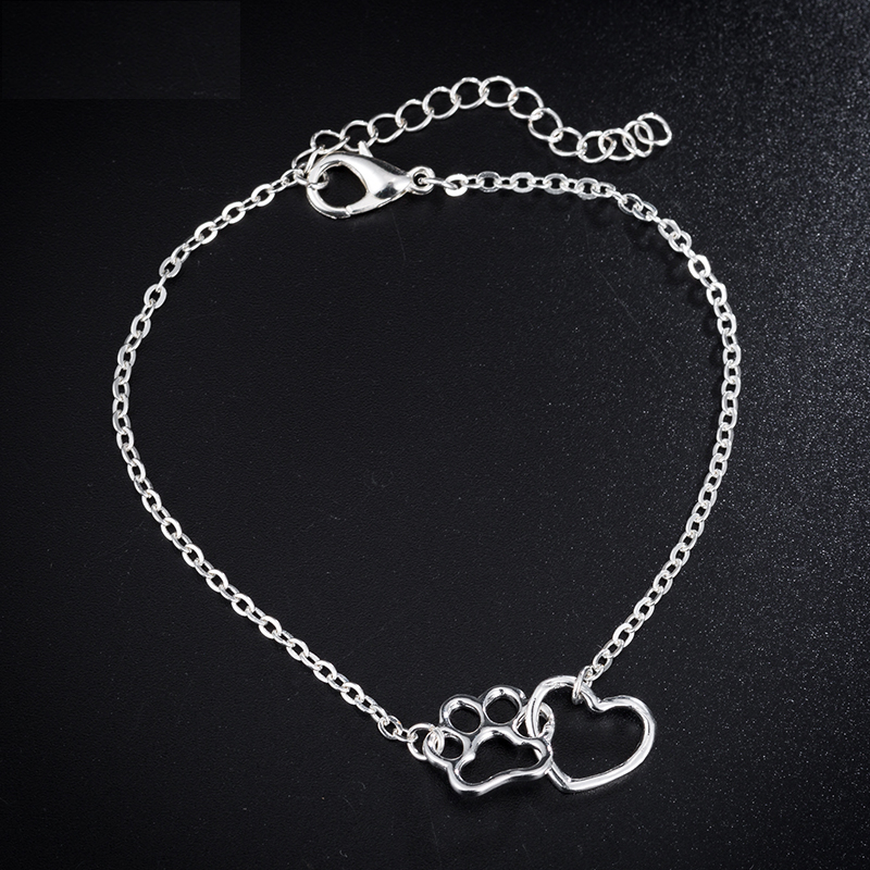 Cute Animal Pet Paws Footprint and Heart Charm Bracelet